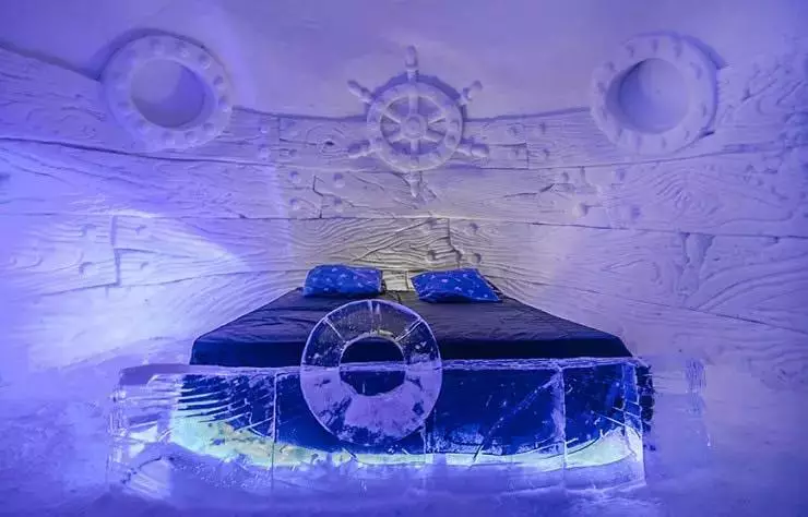 سازندگان برای ساخت این هتل از تکنیکی منحصر به فرد بهره بردهاند. آنها از یخهای دریاچهای در همان نزدیکی استفاده کردهاند. این هتل یک گوزن شمالی دارد که در بدو ورود میهمانان به دیدار و استقبال آنها میرود! هر کدام از ۲۰ اتاق این هتل، منحصر به فرد و هنرمندانه طراحی شده است. اتاقهای هتل دنج و راحت هستند. به علاوه، طبیعت بکر اطراف، تنوع خوبی از فعالیتهای تفریحی از جمله ماهیگیری را برای مسافران به ارمغان میآورد.