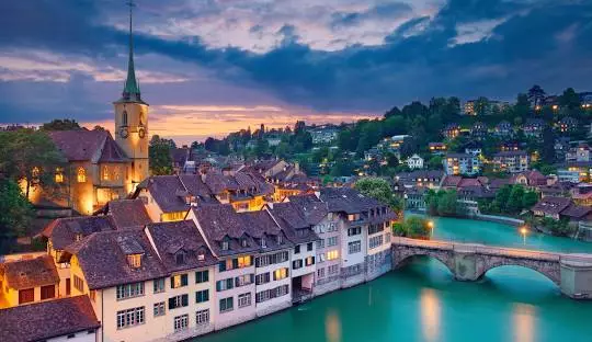 در منطقه‌ای بی‌نظیر و مستقر بر روی شبه‌جزیره رودخانه آره  River Aare، پایتخت کشور سوئیس یعنی شهر تاریخی برن قرار گرفته است. این شهر قرون وسطایی با خیابان‌های سنگفرش‌‌شده به‌عنوان میراث جهانی یونسکو محسوب می‌شود. شهر برن یکی دیگر از اماکن توریستی سوئیس است که جاذبه‌های فراوانی را برای گردشگران به همراه دارد؛ توریست‌ها می‌توانند از بلندترین کلیسای سوئیس بازدید کرده و از طریق برج آن از نمای پانورامای شهر لذت ببرند. هم‌چنین جاذبه‌های توریستی دیگری نظیر فواره آبی قرن ۱۶، برج ساعت قرون وسطایی Zytglogge  با عروسک‌های متحرک و مرکز خرید ۶ کیلومتری که سوئدی‌ها به آن Lauben می‌گویند در کنار باغ رز معروف Rosengarten، گردشگران را به مشاهده زیبایی‌های این شهر قدیمی دعوت می‌کند.