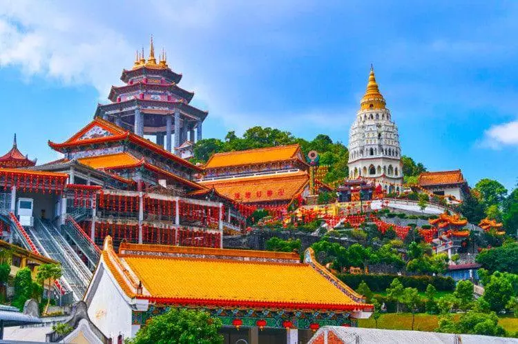 2. پنانگ: یکی از جزایر زیبا و محبوب مالزی که به خاطر سواحل شنی، آب آبی و مناظر طبیعی بکر مشهور است. شهر تاریخی جورج‌تاون و تلفیقی از فرهنگ‌های مالایی، چینی و هندی را نیز در بر می‌گیرد.
