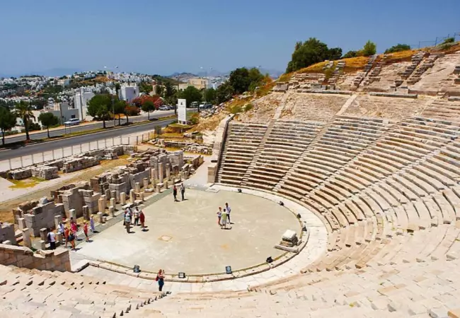 یکی از جاذبه های گردشگری بدروم که بینظیر است و در سه کیلومتری این شهر واقع شده، آمفی تئاتر باستانی بدروم دارد. این شاهکار هنری با معماری سبک کلاسیک یونانی، در زمان خود محلی برای مبارزات گلادیاتورها بوده و در دورههای بعد به عنوان مکانی برای نمایش تئاتر از آن استفاده میشد.